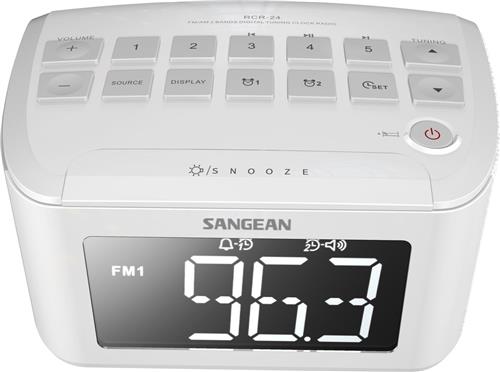 De SANGEAN RCR-24 voldoet aan alle eisen van een moderne wekker. Hij heeft een modern design en speakers aan beide kanten. Wordt comfortabel wakker met het geluid van je radio in plaats van die irritante buzzer. De RCR-24 bevat een AM/FM digitale tuner met 15 presets (10 FM, 5 AM) waarmee je je favoriete radiostations kunt opslaan en mee gewekt kan worden. Deze klokradio heeft een groot LCD display, zodat u alles ook makkelijk kunt zien.
