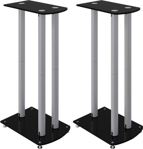 vidaXL - Luidsprekerstandaards - 2 - st - 3 - pijlers - gehard - glas - zwart - zilver